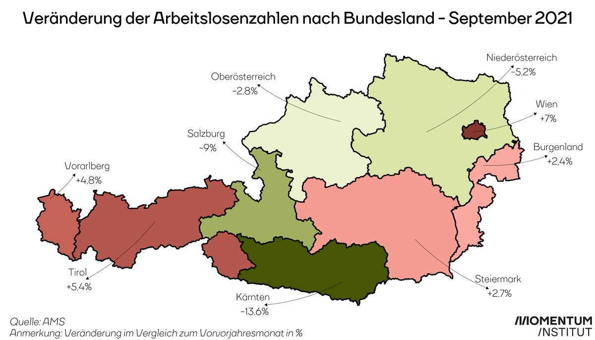 Das Bild nach Bundesländern ist auch noch recht unterschiedlich. Während es in Kärnten sogar 13,6 % weniger arbeitslose Menschen gibt als Ende September 2019, sind es in Wien 7 % mehr. 9/11