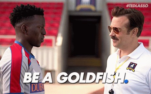 “You know what the happiest animal on Earth is? It’s a goldfish. You know why? Got a ten-second memory. Be a goldfish, Sam.” @TedLasso to @TheSamObisanya