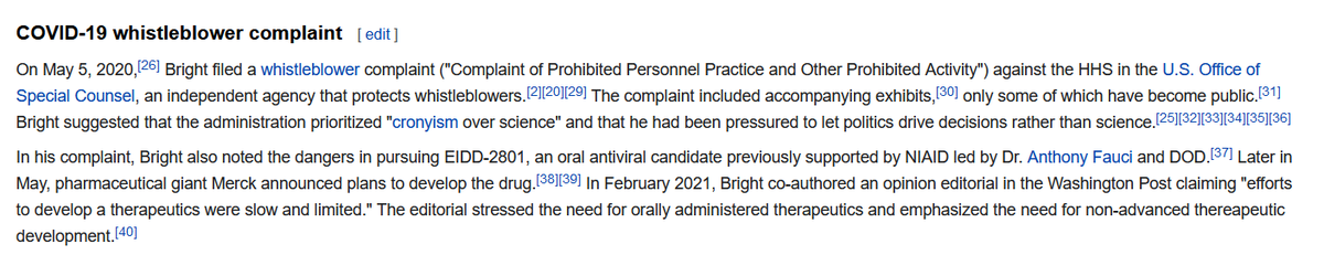 5/n Rick Bright est immunologue et connaissait les précédents de cette molécule. On peut penser que ses craintes n'étaient pas gratuites ou infondées en.wikipedia.org/wiki/Rick_Brig…