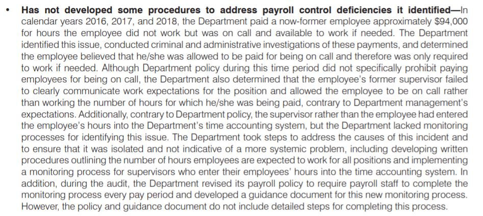 While failing to pay children for compulsory labor, the Arizona Dept. of Juvenile Corrections was found to have paid "a now former employee" $94K for hours they DID NOT work over the course of 3 years: "the employee believed that he/she was allowed to be paid for being on call"