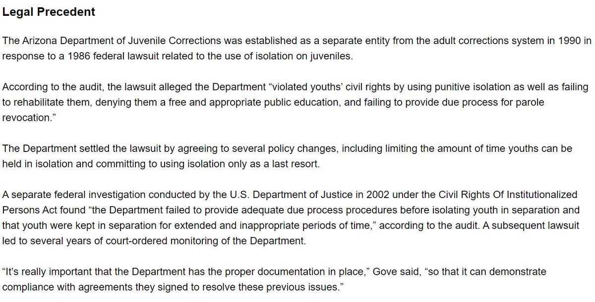 This part is from a previous audit but worth repeating that the Arizona Department of Juvenile Corrections is still putting juveniles in isolation too often and without documenting the reasoning kjzz.org/content/169987…