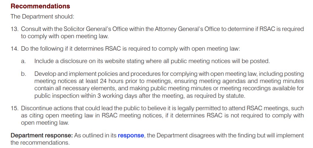 This is something - the audit found a group called RSAC, which "consists primarily of representatives from the religious community who are responsible for advising the Director on the religious programming for youth in the Facility" is potentially violating AZ's open meeting law