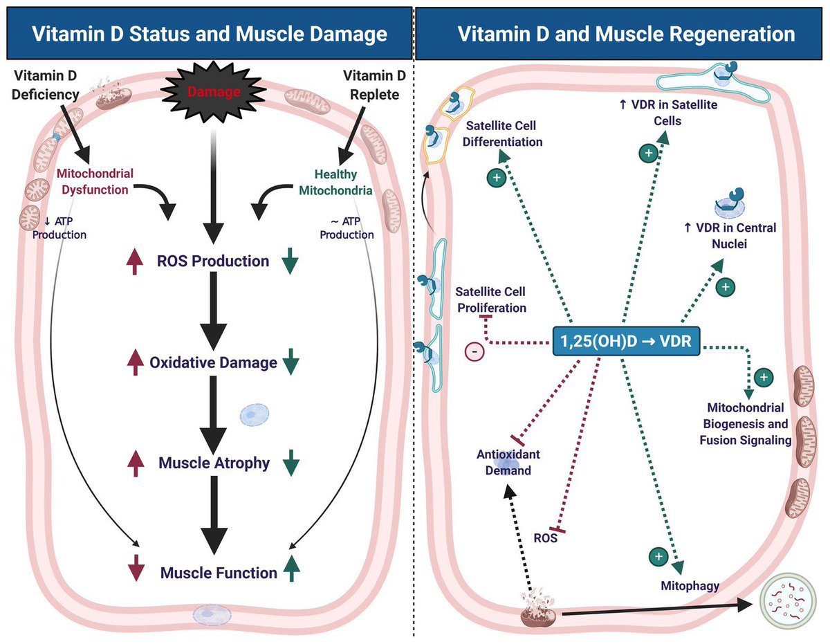 🔬De hecho, la vitamina D parece que juega un rol fundamental para la salud de nuestro sistema musculoesqueletico: facilitar la contracción musuclar, regular la oxidación, salud mitocondrial ... (Latham 2020)