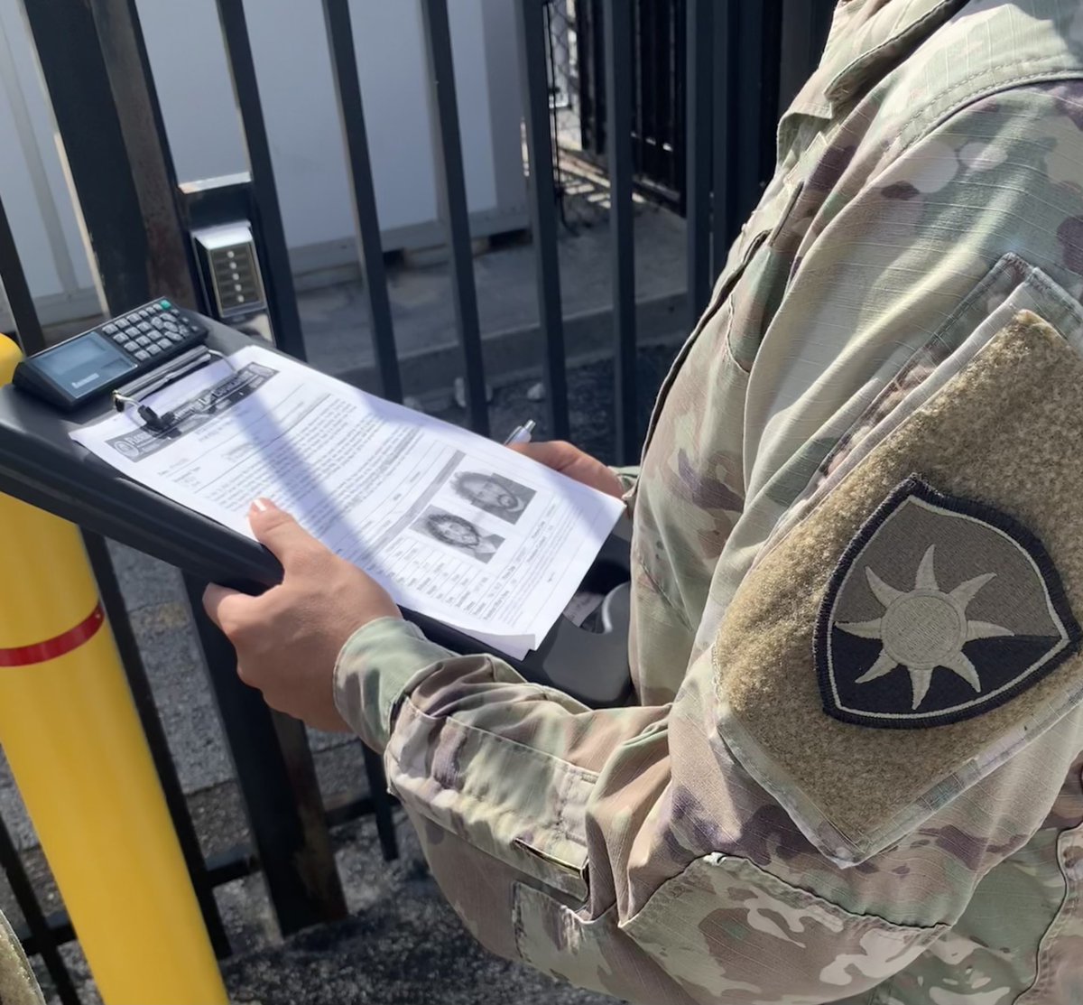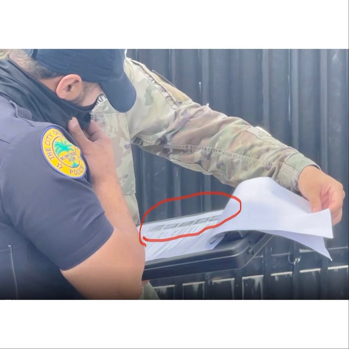 Here is a video of military personnel and police reviewing documents with my picture and information after they stopped me from entering a tax payer funded Ron Desantis press conference.