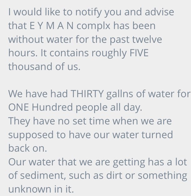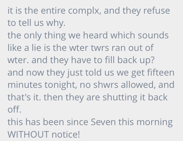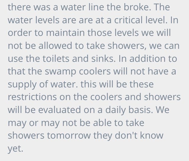 I correspond with this man regularly at Eyman - He says they've been without running water for 12 hours - the prison is bringing in jugs of water but it's not enough for the more than 5,000 people who live there