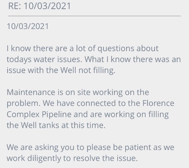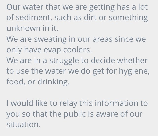 People at Eyman say they still haven't been given any updates as to why the water is out or when it will be back (Neither have I ) Basic communication from the Department could prevent so much anxiety and unrest amongst our incarcerated population