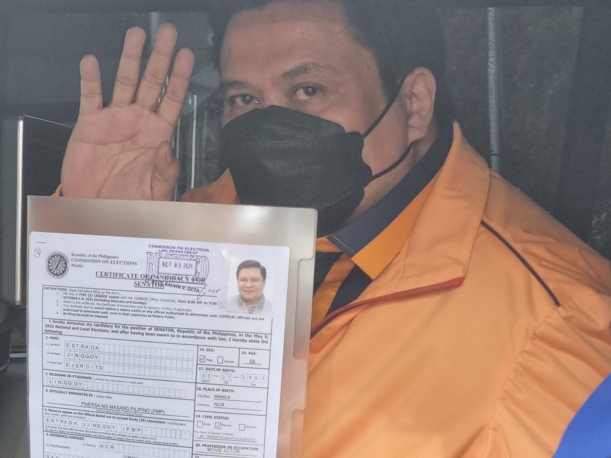 Estrada filed his COC a day after his half-brother, ex-Sen. JV Ejercito. They both lost in the 2019 senatorial race | @meltlopez