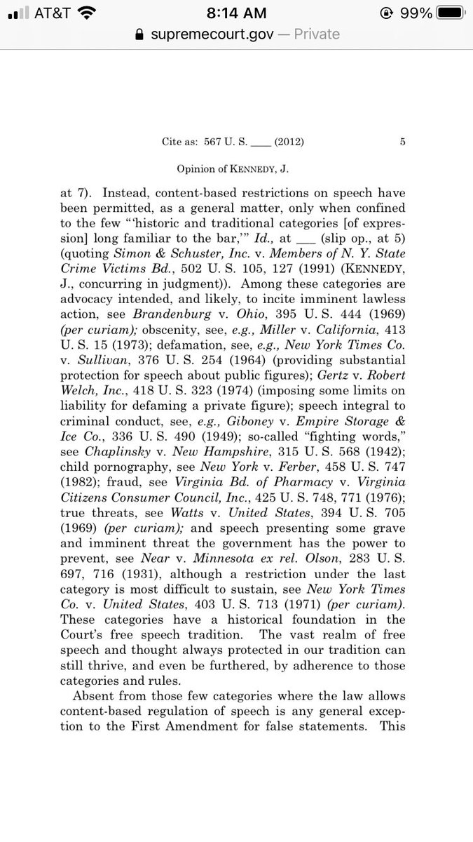 4. But wait, you say, couldn’t SCOTUS, who has made these other exceptions, also say that false speech in general is unprotected? While that may be theoretically true, SCOTUS has rejected that very argument.