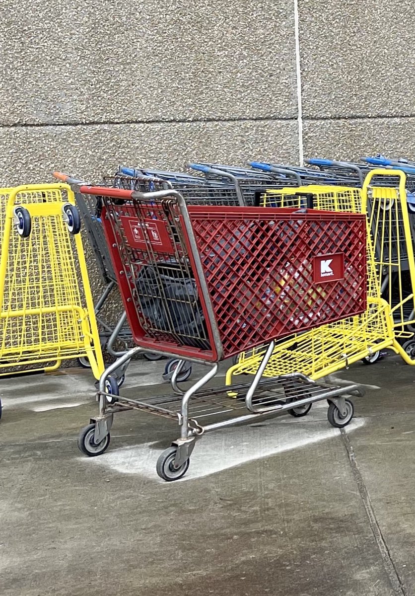 Like to imagine the orphaned Kmart carts endured a long lonely journey to finally be welcomed into the Walmart flock as honorary members after displaying feats of strength, honor, & courage