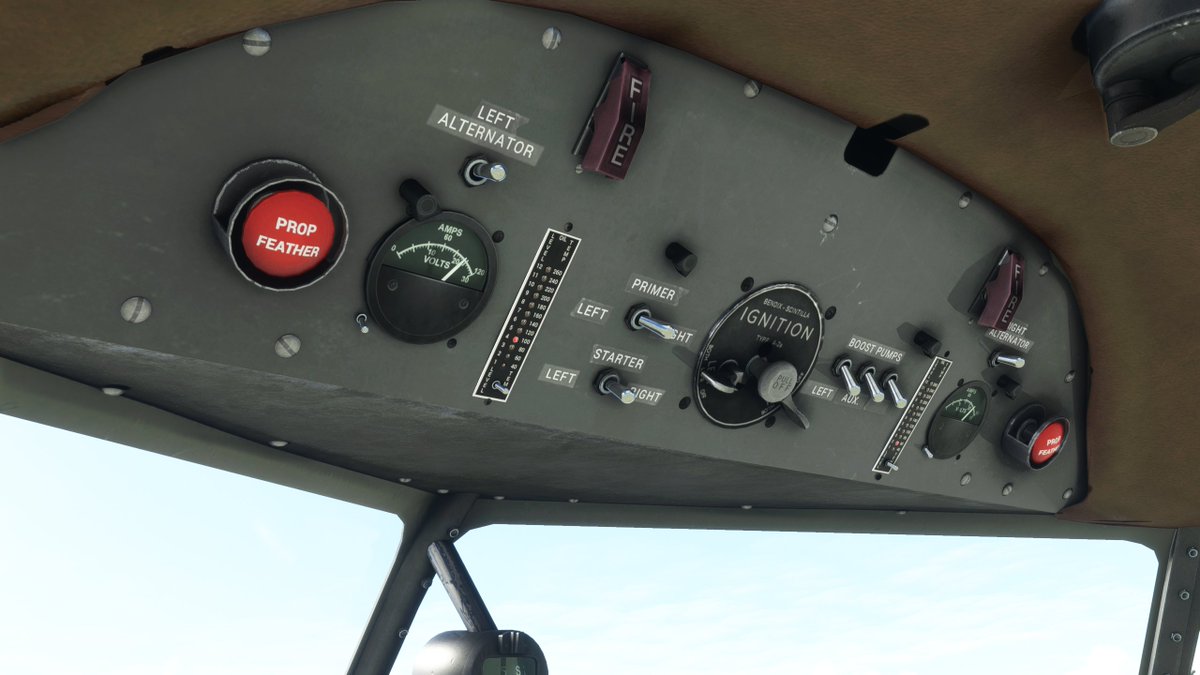 Overhead are the main magneto and ignition switches to turn on the engines.