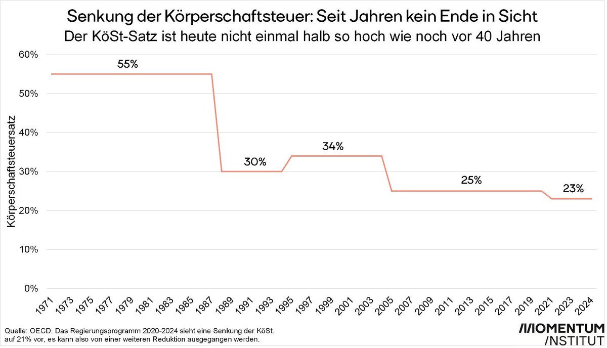 KÖST-SENKUNG: Von der Senkung der Körperschaftsteuer profitiert nur ein Bruchteil der Unternehmen - sehr gewinnstarke Großunternehmen und deren Eigentümer:innen. Die Senkung kostet 750 Mio. und bringt wenig.