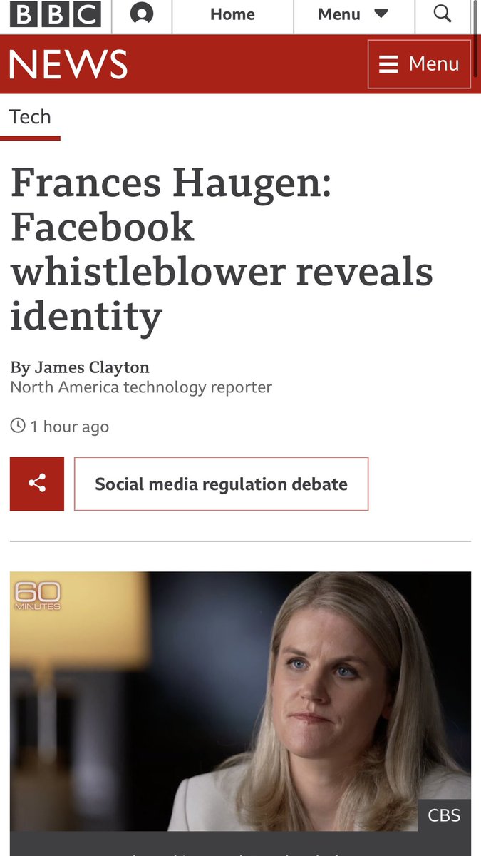 Pretty impressive rollout by Facebook whistleblower. She has stream-rolled over efforts by Facebook to control the narrative or create doubt in the reporting and her. Here is New York Times and Washington Post. /1