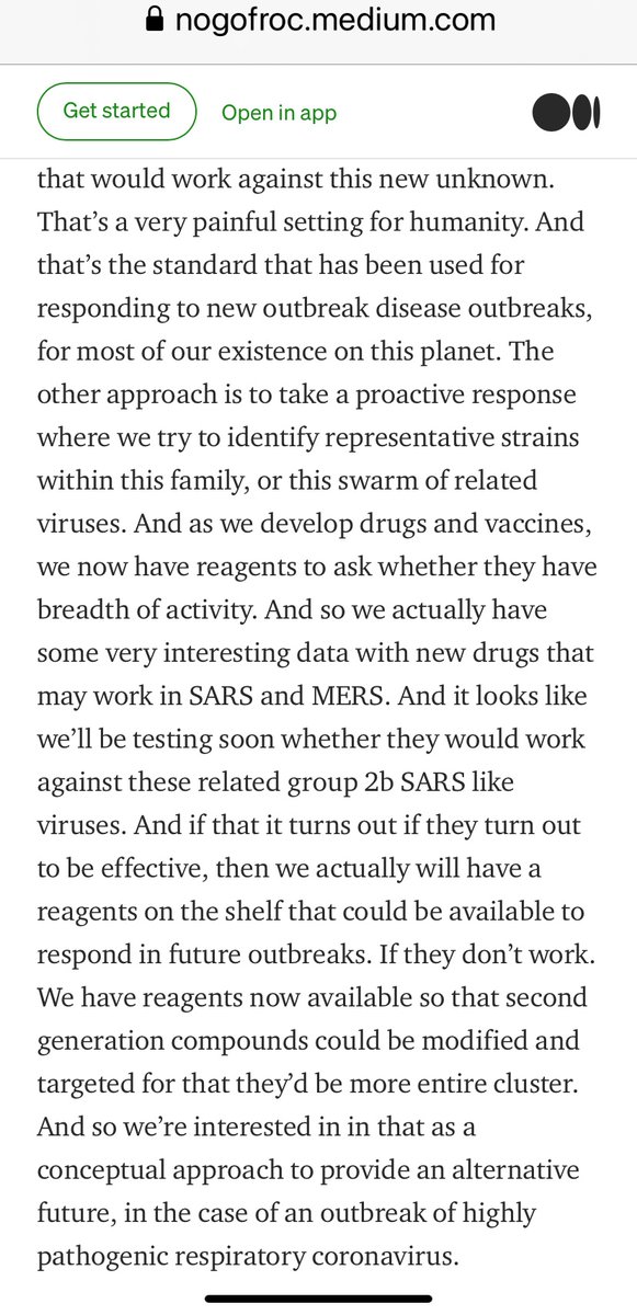 This Nov. 2015 interview of UNC’s Ralph Baric = wild & eery. At min23 says how he got MERS GOF Fauci waiver (right away?), & min26 how he didn’t need waiver for some bat virus research cause it didn’t replicate /“hadn’t gained” microbe.tv/twiv/twiv-364/