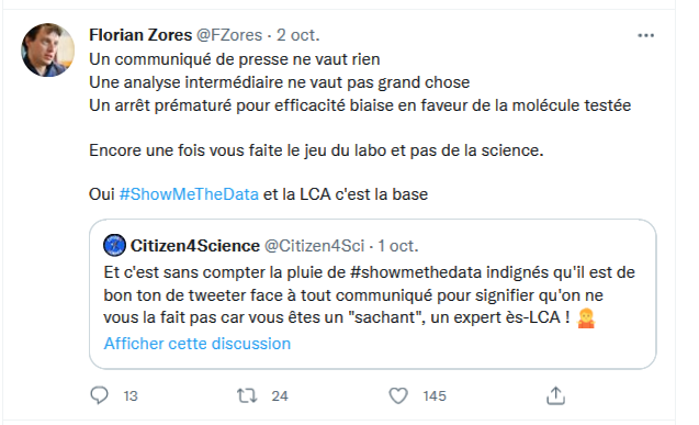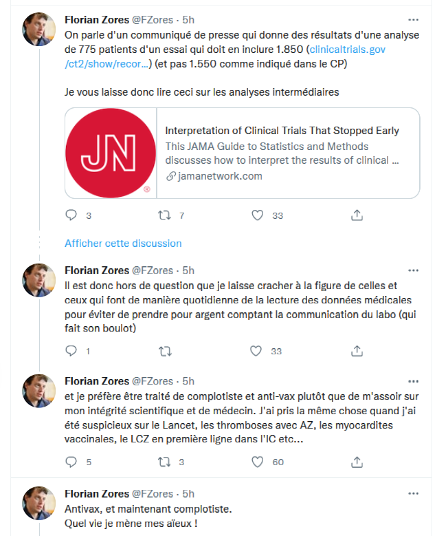 7/n Ici, il semble qu'elle ait décidé de traiter d'antivax @FZores qui n'était pas d'accord avec elle sur la valeur à accorder au communiqué de presse d'une pharma