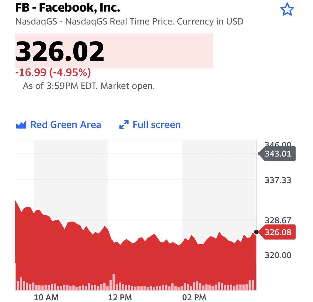 #URGENTE: Ações do Facebook desabam mais de 5% em meio a apagão online que atinge todos apps da companhia.