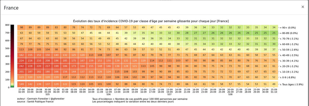 4/n Alors que l'incidence chez les 0-19 ans a dimnué de 50% depuis la rentrée, contrairement à ce que ces personnes avaient annoncé, ils continuent à ignorer les faits et à annoncer des catastrophes contre lesquelles la seule solution serait la vaccination de tous les enfants.