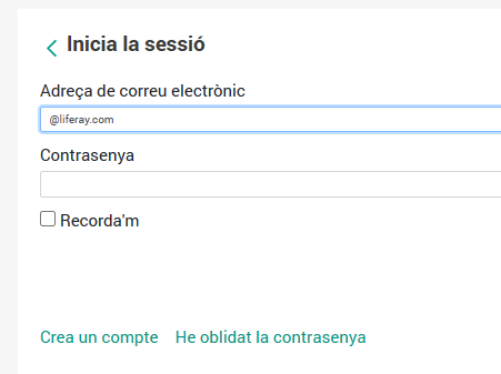 Hmm...una altra pantalla de login, suggerint el domini @liferay.com. A part de ser mala praxi revelant la tecnologia que hi ha a sota, em permetia provar els diferents usuaris possibles. No hi ha CAPTCHA ni res que pugui limitar els logins.