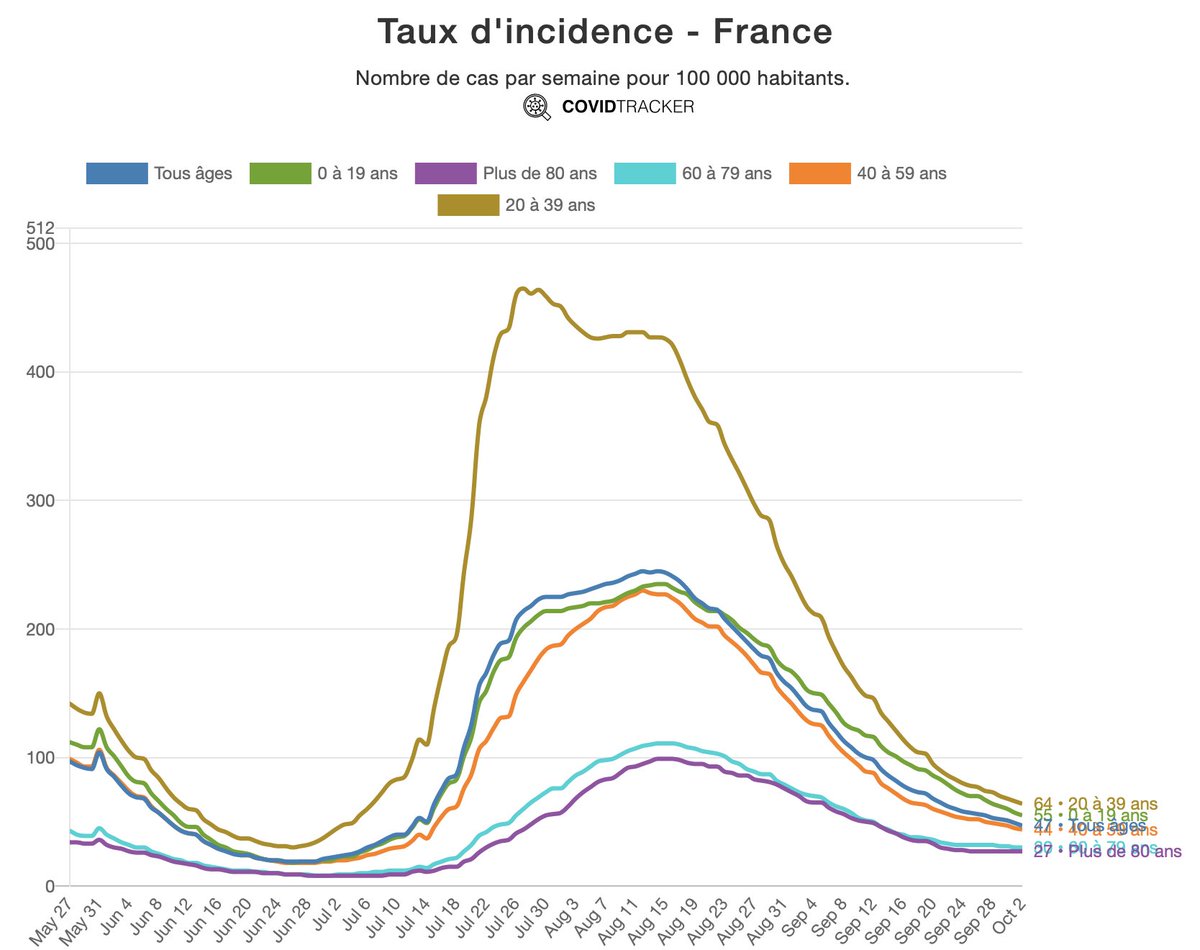 Le taux d’incidence est de 48, soit sous le seuil d’alerte historique (qui est de 50).