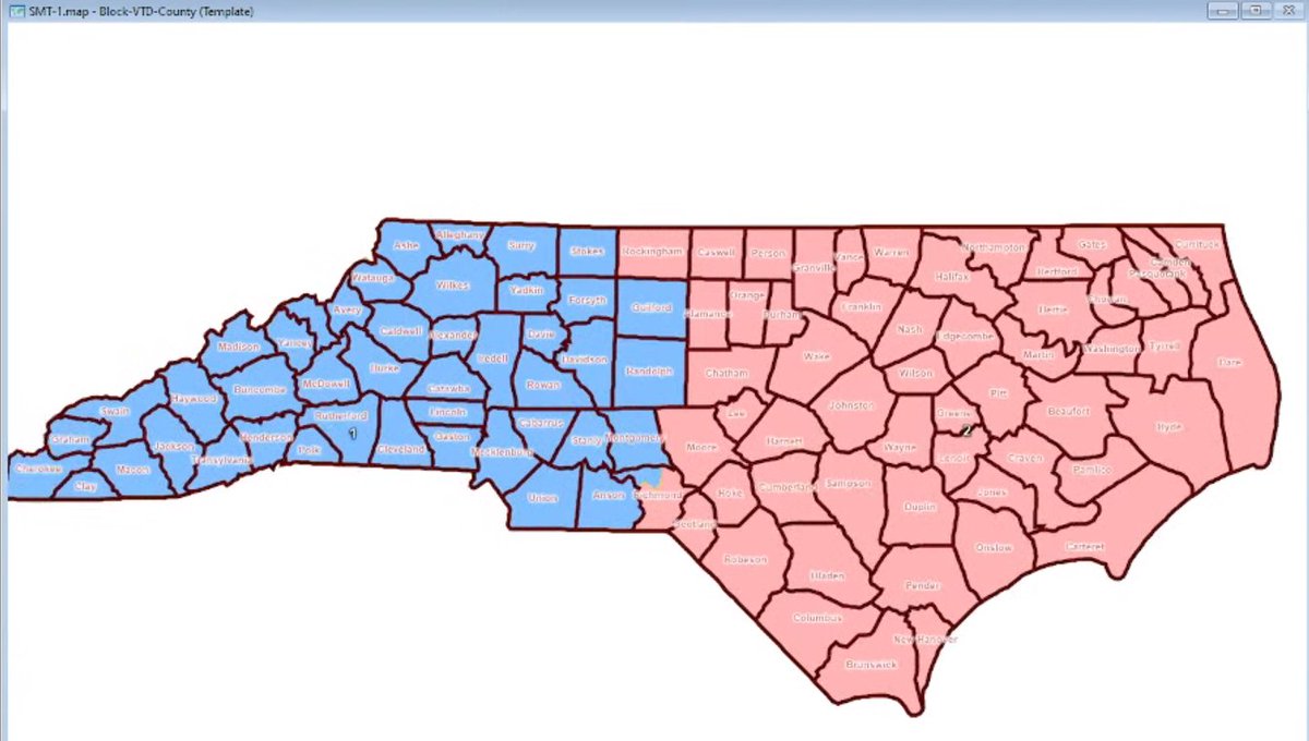He's then proposing that line become a hard dividing line for the new Congressional districts, since we have 14 of those now. Eastern NC should get 7 and Western NC should get 7, he says, with no overlap. #ncpol#NCGA