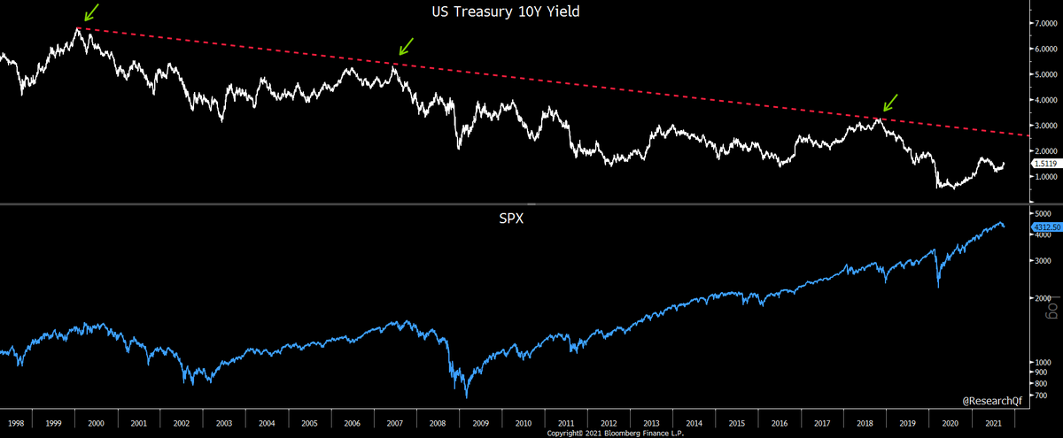 Who am I do comment but bursting of the dotcom bubble was preceded by 6.8% 10Y, GFC was ...