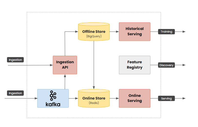 - Offline store for historical lookups (training)