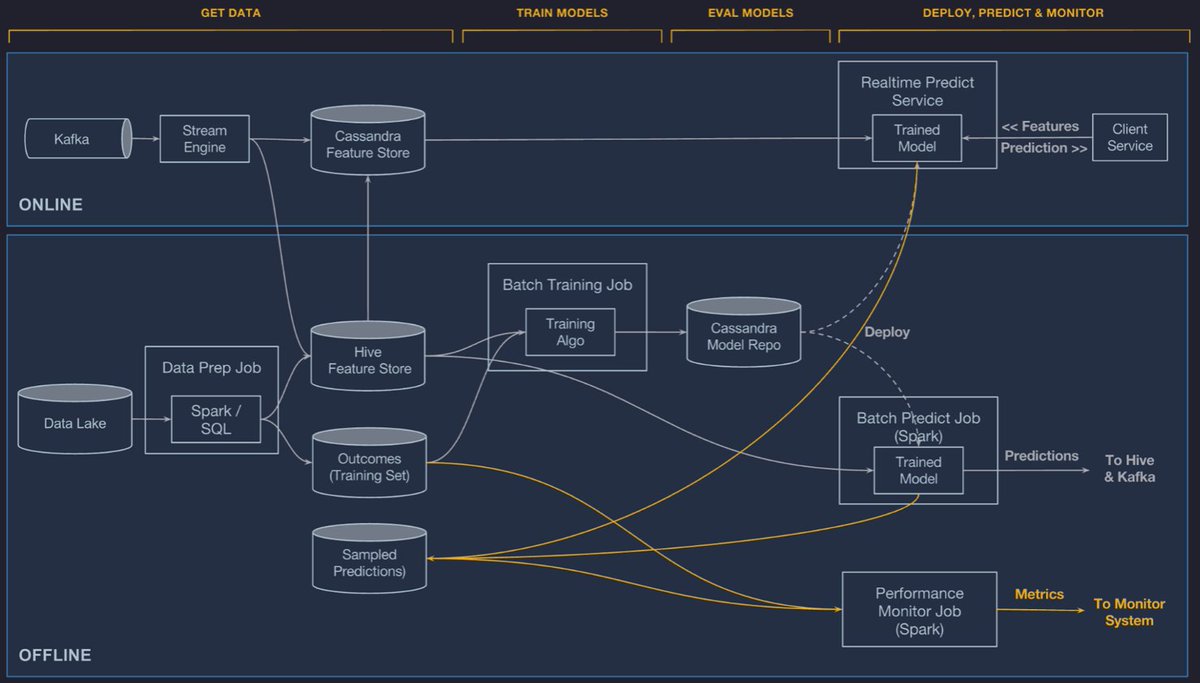 For example, the @NetflixEng team uses a ML architecture with FS-like capabilities called Metaflow. With Metaflow, data scientists can push models to production in 1 week or less on average