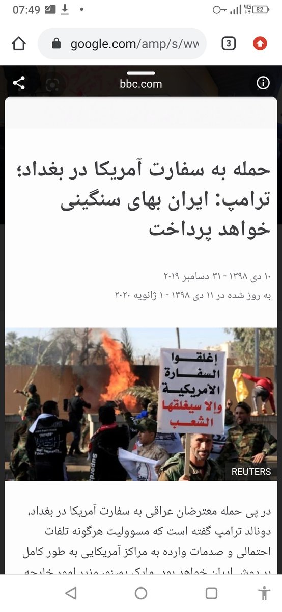 بعد از این عکس انقلابیا گفتن به به سفارت عراقشونم اوردیم پایین و تو این جو بودن و ترامپم که نقشه ترور رو داشت اینو بهونه کرد و شهید سلیمانی رو ترور کرد.