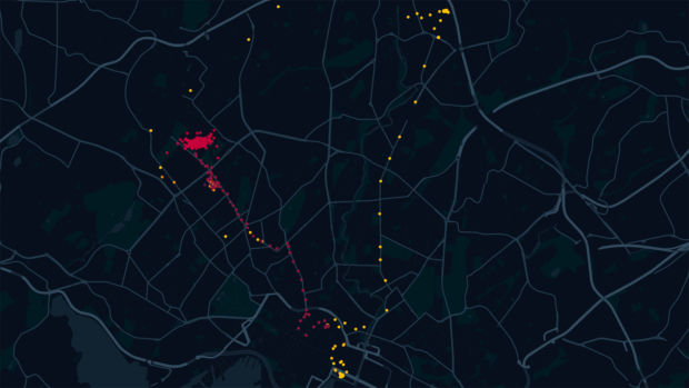 For those interested, this is how the data looks like on a map. This is from 11 apps that shared location data with Huq Industries (one color per app) shown on a map of parts of Oslo.