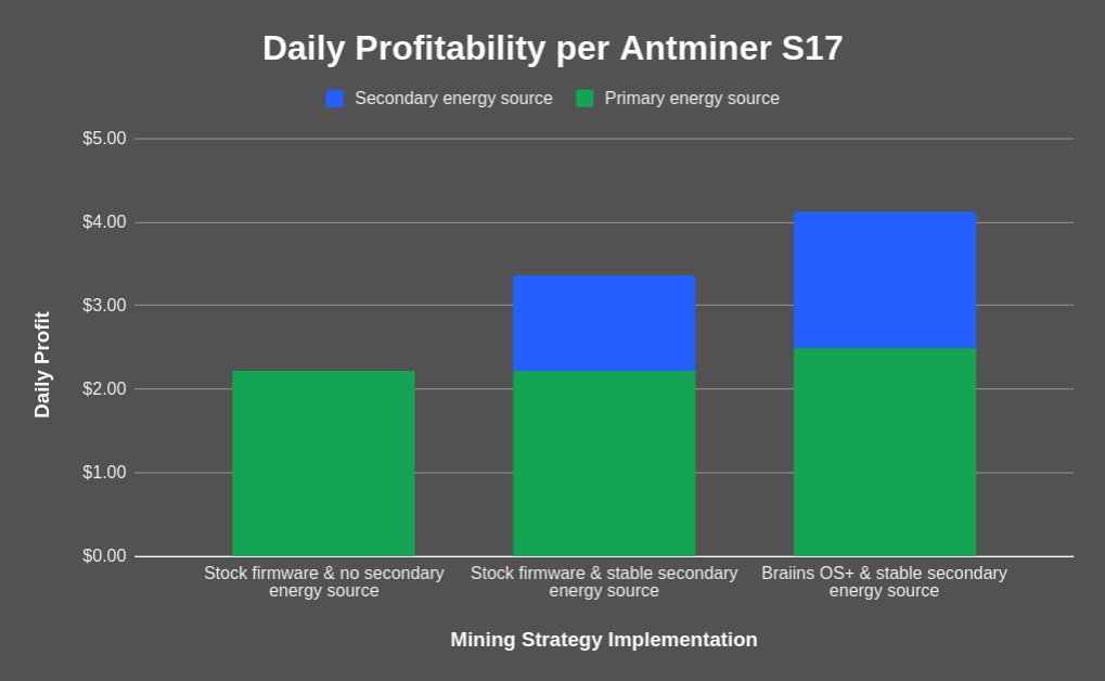 More interesting is the ability to granularly optimize based on variable energy prices and amounts. Enter Braiins OS+...