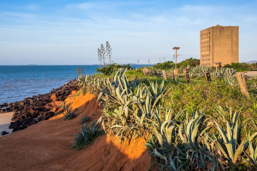 Pues, al parecer, tampoco les parecía suficiente con el Muro de Emisión de Beishen, porque en el otro lado de la isla construyeron OTROS DOS ALTAVOCES GIGANTES DE HORMIGÓN (aunque uno es más "pequeñito").