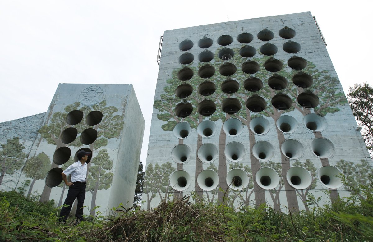 Construido en 1967, el Muro de Emisión de Beishen es un cubo de hormigón horadado con 48 huecos donde se instalaron 48 altavoces de alta potencia con el sano objetivo de atronar a los vecinos chinos.