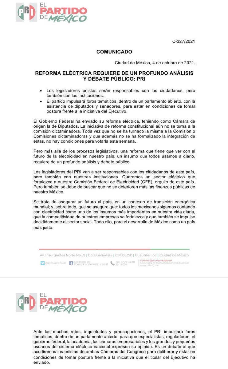 1. Se supone que el PRI con EPN promovieron la reforma eléctrica para aceptar inversión privada y es el mismo PRI el que está pensando para votar a favor de la contrareforma que se opone a la reforma antes aceptada. ¿Que busca el PRI en verdad? Su propia conveniencia.