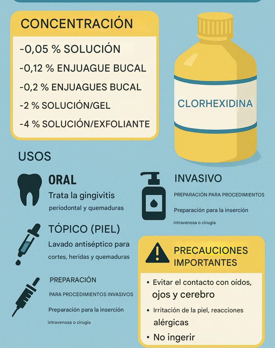 🔹 Concentraciones comunes de clorhexidina y sus usos: