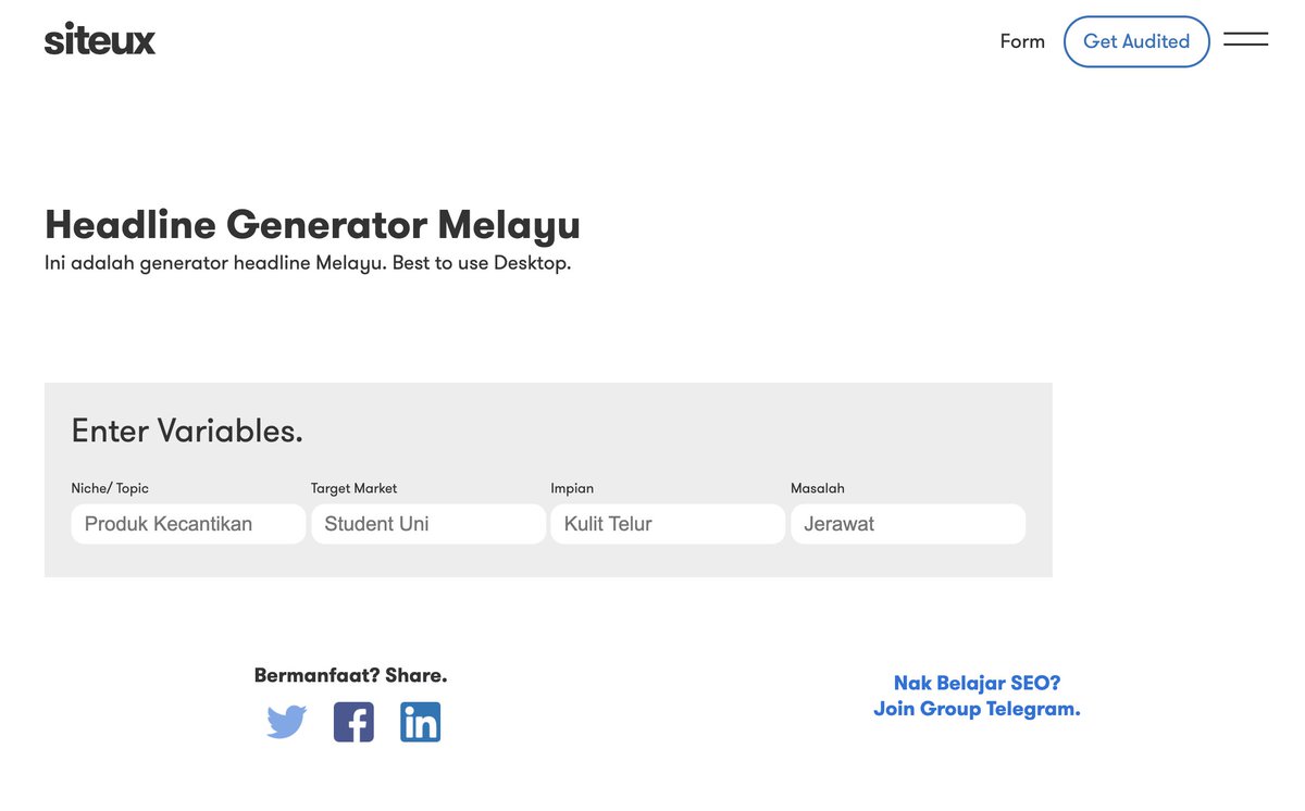 1. Bina tools 2. Paling mudah guna 3. Tulis SEO Meta. 4. Copywriting direct. 5. Paksa visitor 'stay lama'. 6. Promote di Twitter 7. Paksa Google Index.