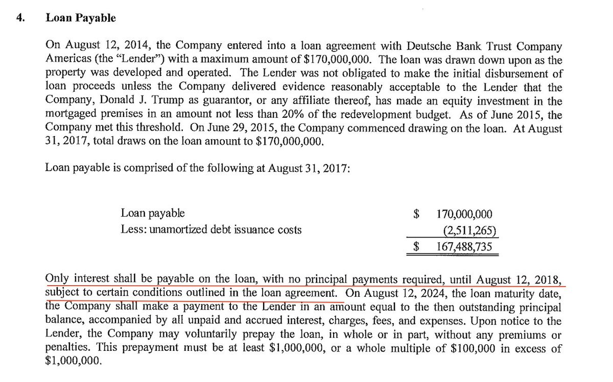 And, wow, looks like @DeutscheBank secretly amended the terms of the loan to allow Trump to defer any principal repayments for six years.