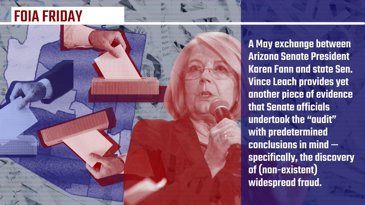 A May exchange between Arizona Senate President Karen Fann and state Sen. Vince Leach provides yet another piece of evidence that Senate officials undertook the “audit” with predetermined conclusions in mind — specifically, the discovery of (non-existent) widespread fraud.