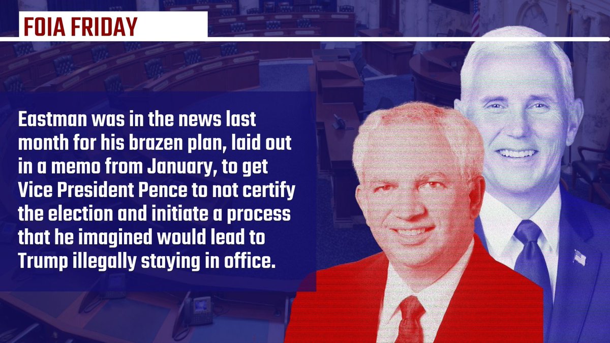 Eastman was in the news last month for his brazen plan, laid out in a memo from January, to get Vice President Pence to not certify the election and initiate a process that he imagined would lead to Trump illegally staying in office.