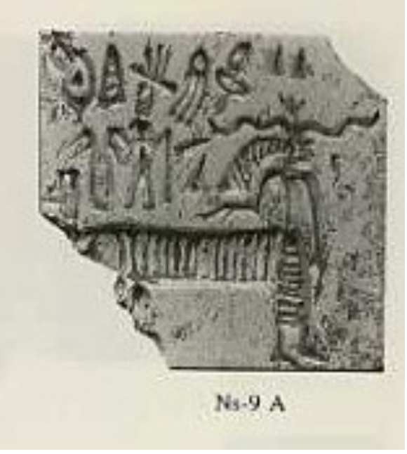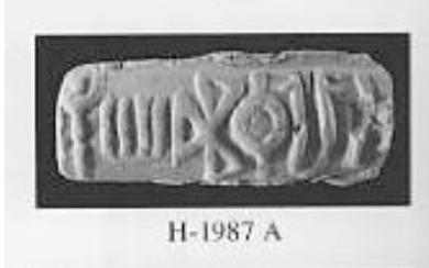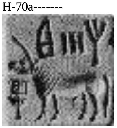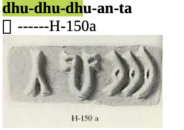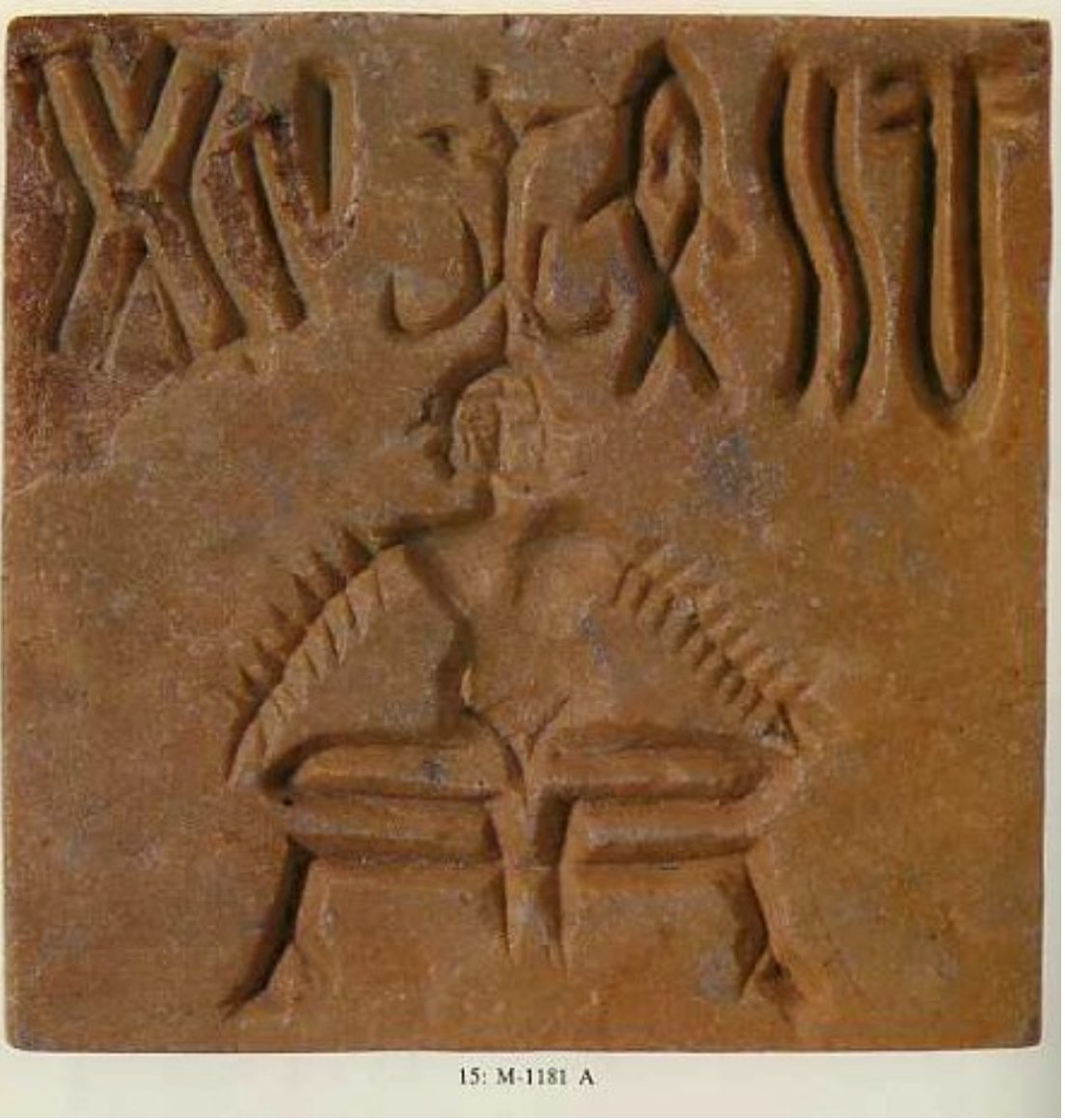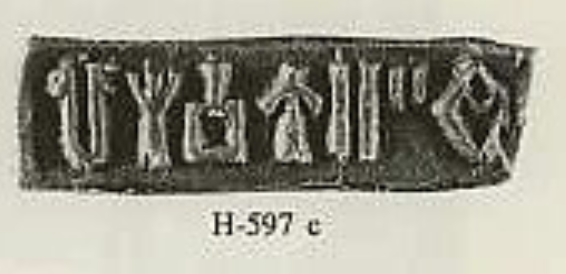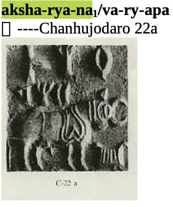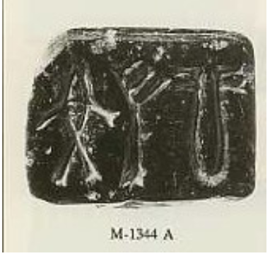 The first seal has dha ध followed by double human symbol. Only fit are धक्क्/ धट्ट् /धा. The second symbol can only accept अ, reading अतन् We prove that the human symbol is indeed the source of the Brahmi
