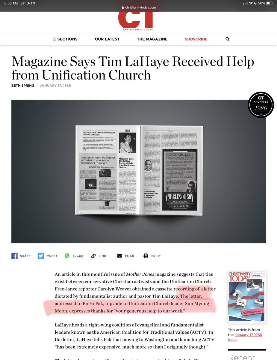 37 years after Tim LaHaye organized a protest for Sun-Myung Moon, Moon’s son Sean has a spinoff cult which is extremely focused on the manufacture and distribution of weapons of war.