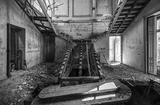 La casa empezó a llenarse de humedades. Las escaleras que subían a los torreones de la cubierta se desmoronaron. Las barandillas de hierro se oxidaron. La pintura exterior desapareció. Las escamas de cerámica de los tejados fueron cayendo. Un desastre todo.