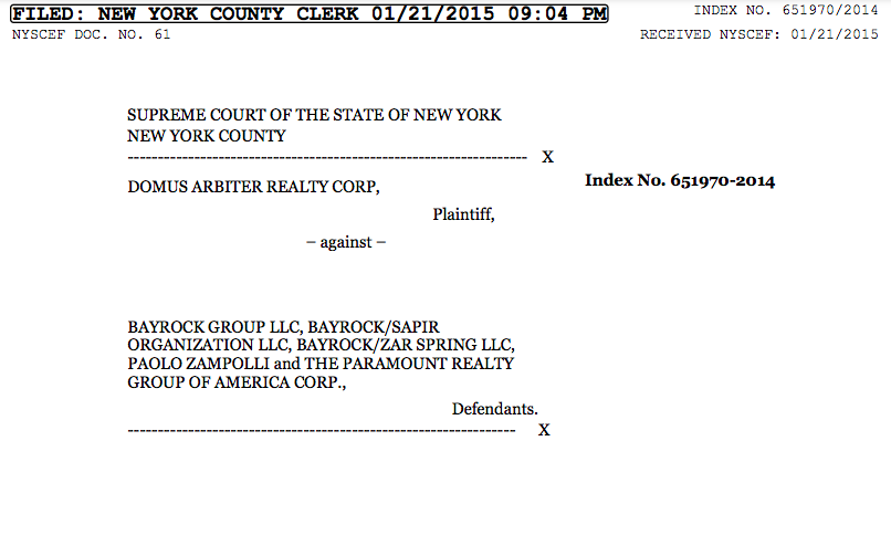 Here are some of the 2015 legal filings in lawsuit by Domus Arbiter Realty Corp - related to the 2013 sale of 14 Trump Soho units for $10.8 million - against Paolo Zampolli, Paramount, Bayrock/Sapir and others HT @usseriously