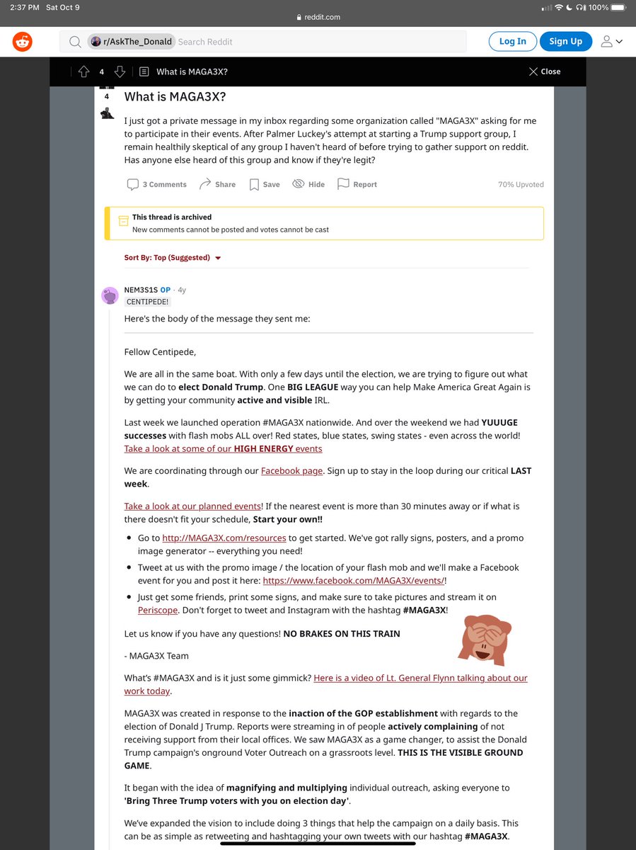 Here’s a contemporaneous post from someone invited into #MAGA3X. Mike Flynn’s endorsement is used to validate and promote it.
