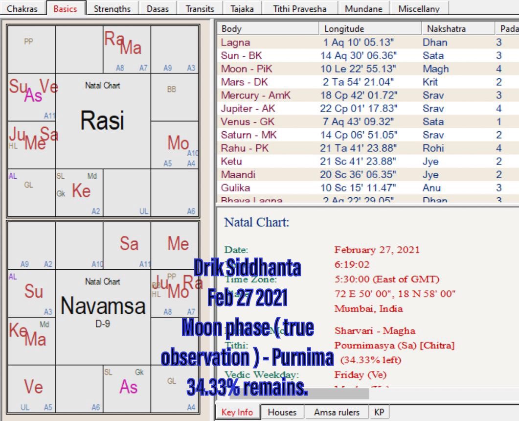 Here is Drik vs Surya Siddhanta for 2021 Feb 27: