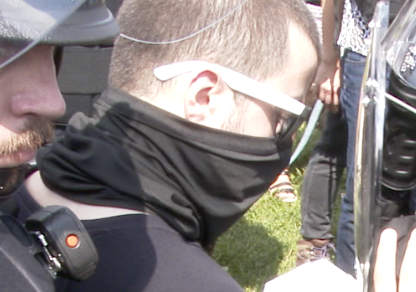 More vid from yesterday: Man with a raccoon hat (which he wanted to be very clear is different than Viking attire or felt) showed up at the "Justice for J6" event and was confronted by counter-protester and press.