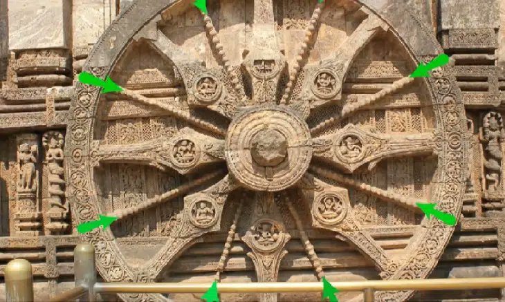 It was built in around 1250 A.D.. For the uninitiated the sundial has 8 major spokes that divide 24 hours into 8 equal parts, which means that the time between two major spokes is 3 hours.
