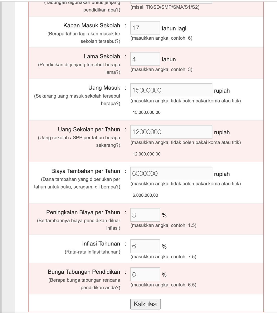 Terinspirasi dari Instagram Storiesnya @reinharthrm tentang biaya edukasi, liat simulasinya. Ternyata mahal juga ya. Terus daku jadi penasaran coba bikin simulasiku sendiri.