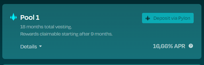 Los pools en @pylon_protocol son sitios en los q pones los UST que quieras a producir. Estos UST quedan bloqueados un tiempo (6, 12 o 18 meses) y al final los recuperas. Es decir, no pierdes dinero, simplemente se bloquea y recibes, adicionalmente, tokens del proyecto.