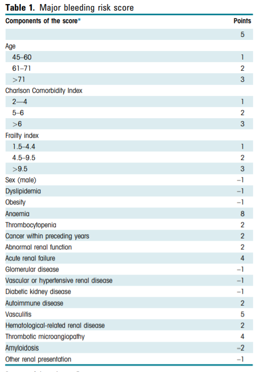 📌Outcomes: Major bleeding 🩸at day 8 and risk of death ☠️at day 30 assessed using Bleeding risk score