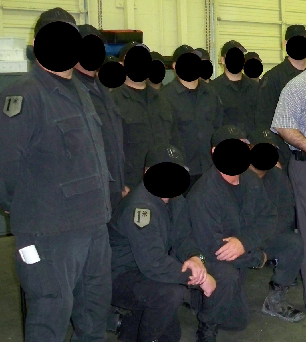 A 2010 photo obtained by The Republic shows members of an Arizona Department of Corrections Tactical Support Unit wearing shoulder patches on their uniforms and hats with the number one and an asterisk.