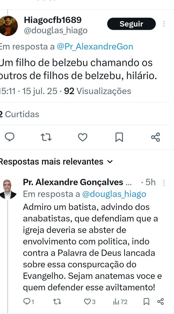 Vendo gente defender (e ate ofender quem denuncia) politicos subirem em púlpitos para conspurcarem o altar, uma profunda tristeza e indignação se abate na minha alma.
